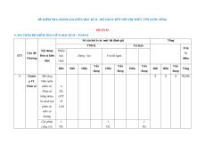 Số câu hỏi ở các mức độ đánh giá TNKQ Tự luận Chủ Nội dung/ Nhiều STT đề/Chươn Đơn vị Yêu cầu cần đạt lựa Đúng - Sai Trả lời ngắn g kiến thức chọn Vận Vận Vận Biết Biết Hiểu Hiểu Hiểu dụng dụng dụng 1 Chương