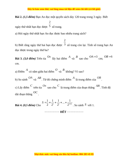Bài 2. (1,5 điểm) Bạn An đọc một quyển sách dày 120 trang trong 3 ngày. Biết