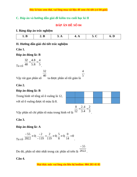 II. Hướng dẫn giải chi tiết trắc nghiệm Câu 1. Đáp án đúng là: B Ta có . Vậy rút gọn phân số