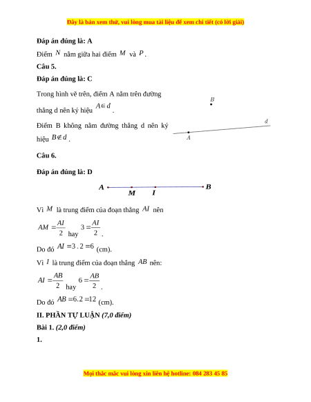 . Gọi là trung điểm của đoạn thẳng và điểm