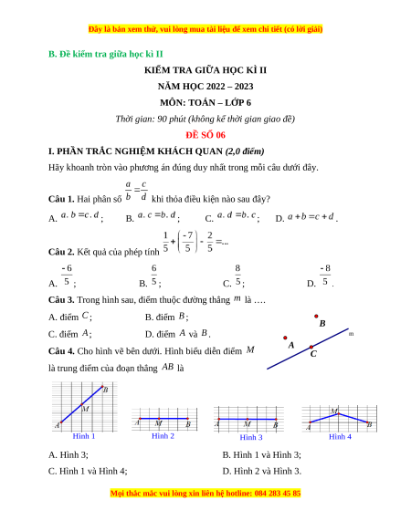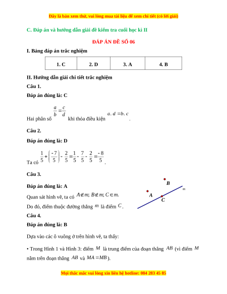 II. Hướng dẫn giải chi tiết trắc nghiệm Câu 1. Đáp án đúng là: C Hai phân số khi thỏa điều kiện . Câu 2. Đáp án đúng là: D Ta có . Câu 3. B Đáp án đúng là: A m Quan sát hình vẽ, ta có A C