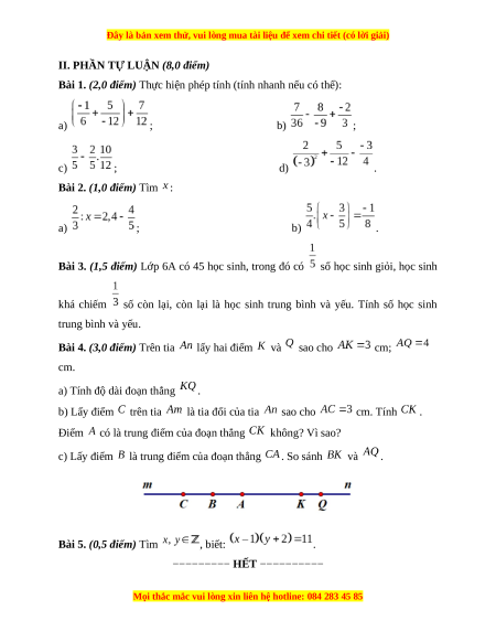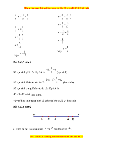 Bài 3. (1,5 điểm) Lớp 6A có 45 học sinh, trong đó có