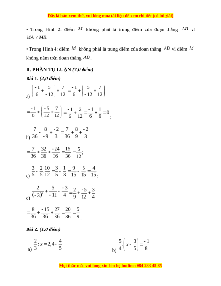 Bài 1. (2,0 điểm) Thực hiện phép tính (tính nhanh nếu có thể): a) ; b) ; c) ; d) .