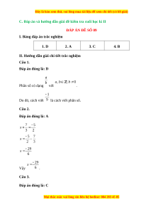 C. Đáp án và hướng dẫn giải đề kiểm tra cuối học kì II ĐÁP ÁN ĐỀ SỐ 09