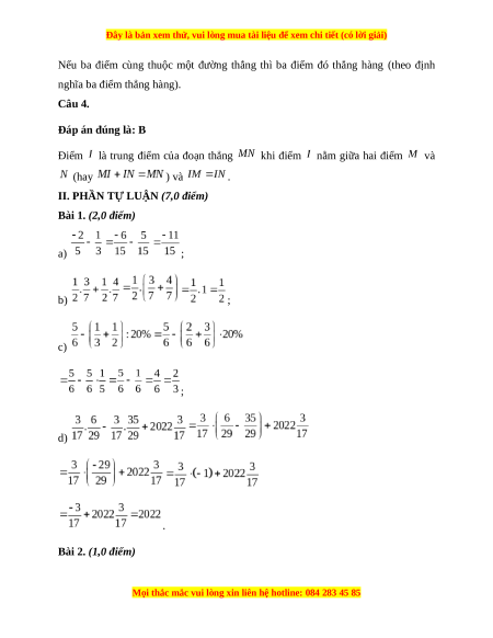 nghĩa ba điểm thẳng hàng). Câu 4. Đáp án đúng là: B