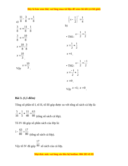 Bài 3. (1,5 điểm) Bốn tổ của lớp 6A đóng góp sách cho thư viện như sau: tổ I góp