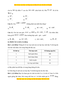 Bài 1. (2,0 điểm) Thống kê về các loại sách mà các bạn học sinh lớp 7A đã ủng hộ