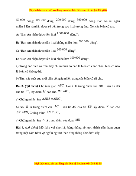 Bài 2. (1,0 điểm) Bạn An tham gia trò chơi rút tiền lì xì. Có tất cả 5 bao lì xì bên