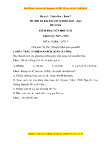 Đề kiểm tra giữa học kì II năm học 2022 – 2023 ĐỀ SỐ 05