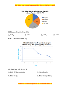 Câu 1. Dữ liệu thống kê là số còn được gọi là A. dữ liệu; B. con số; C. số liệu; D. Cả A, B và C đều sai.