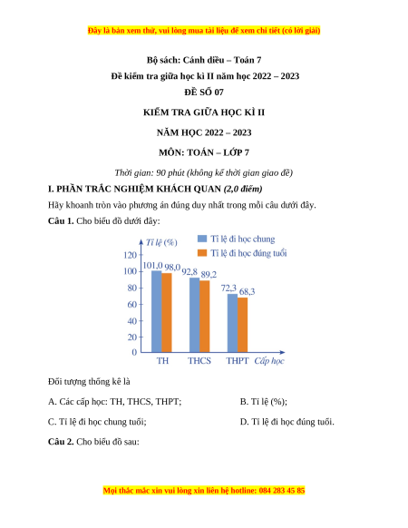 Đề kiểm tra giữa học kì II năm học 2022 – 2023 ĐỀ SỐ 07