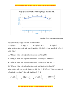 Ngày nào trong 7 ngày đầu năm 2021 lạnh nhất? A. Ngày 1; B. Ngày 2; C. Ngày 3, 4, 5; D. Ngày 7.