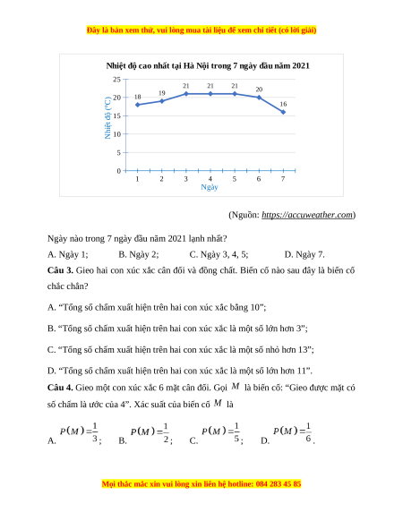 Câu 4. Gieo một con xúc xắc 6 mặt cân đối. Gọi