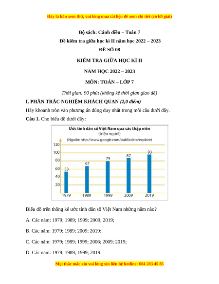 Đề kiểm tra giữa học kì II năm học 2022 – 2023 ĐỀ SỐ 08