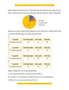 Câu 2. Biểu đồ hình quạt tròn ở hình dưới đây biểu diễn kết quả thống kê (tính