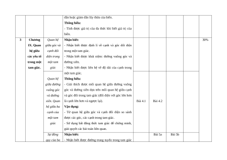 tuyến trong một tam giác TD, GQVĐ TD, GQVĐ Tổng số câu 3 8 3 1 15 Điểm 2,5 4,5 2,5 0,5 10 Tỉ lệ % 25% 45% 25% 5% 100%