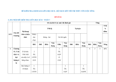 của dãy tỉ số GTTH Đ lượng tỉ bằng nhau. 0,5đ 0,5đ lệ Đại lượng tỉ 1 1 1 lệ thuận. TD, TD, TD, GTTH GQV GQVĐ Đ 1,0đ 0,25đ 0,5đ 2 1 1 1 TD, TD, Đại lượng tỉ TD, TD, GTT GQV lệ nghịch. GTTH GQVĐ H Đ 0,25đ 0,25đ 0,5đ 0,25đ 2 Biểu thức đại TD, Chương số. GTTH VIII. 0,5đ Biểu Đa thức một thức đại biến. Phép 2 1 1 4 2 1 25%