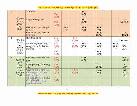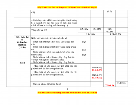 phép tính về đa thức trong tính toán. TN7 (0.25) TL7 (0.75)
