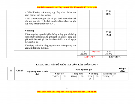 KHUNG MA TRẬN ĐỀ KIỂM TRA GIỮA KÌ II TOÁN –LỚP 7