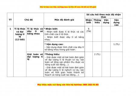 – Nhận biết được dãy tỉ số bằng (12 tiết) nhau. * Vận dụng cao: 1 (TL)