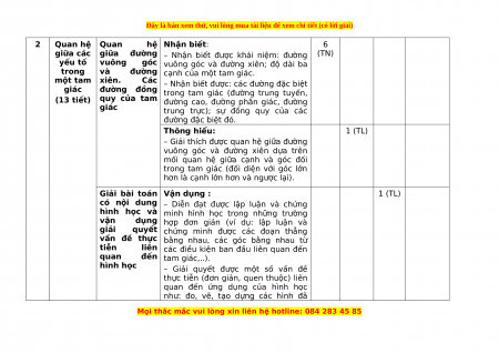 góc và đường xiên. Các đường 1 giữa các (1,5đ đồng quy của tam giác. (2đ) 35 2 yếu tố )