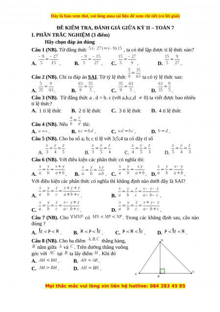 ĐỀ KIỂM TRA, ĐÁNH GIÁ GIỮA KỲ II – TOÁN 7