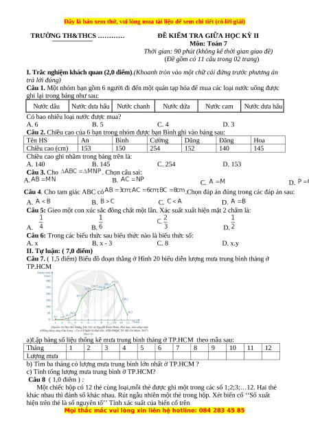 Đề thi giữa kì 2 Toán 7 năm 2022 - 2023 (Đề 9)