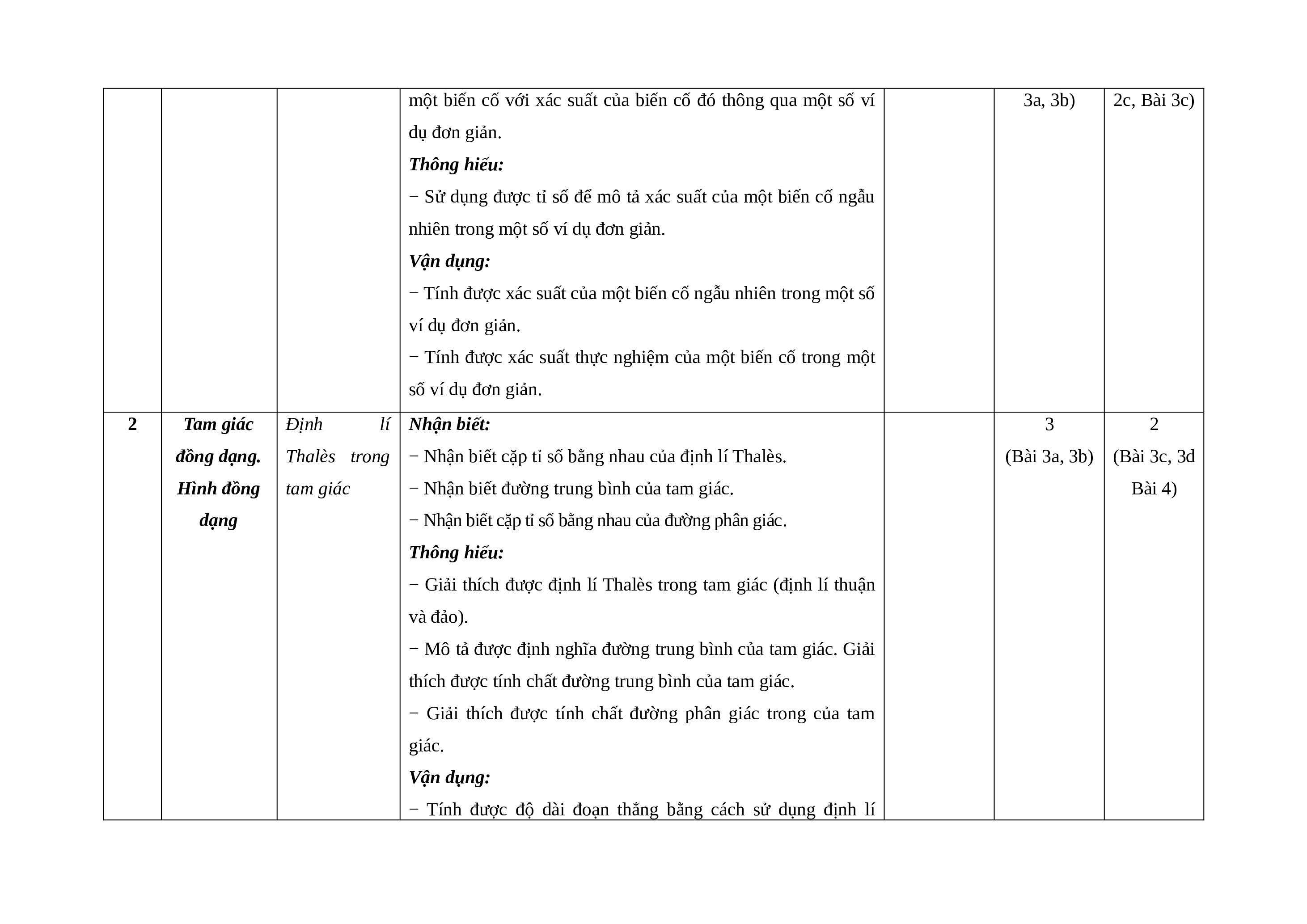 − Nhận biết cặp tỉ số bằng nhau của đường phân giác. Thông hiểu: