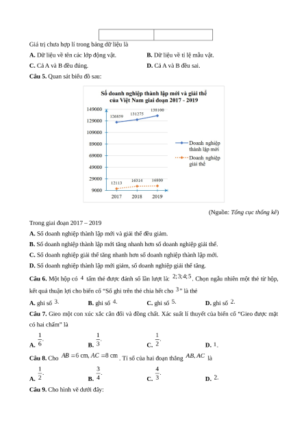 Câu 7. Gieo một con xúc xắc cân đối và đồng chất. Xác suất lí thuyết của biến cố “Gieo được mặt có hai chấm” là A. B. C. D. . Câu 8. Cho