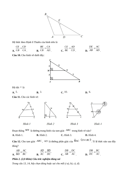 là đường trung bình của tam giác trong hình vẽ nào? A. Hình 1. B. Hình 2. C. Hình 3. D. Hình 4. Câu 12. Cho tam giác ,