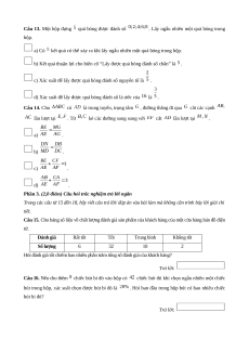 d) Xác suất để lấy được quả bóng đánh số là ước của là . Câu 14. Cho có