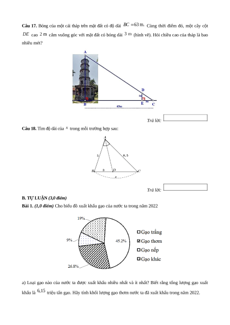 Câu 17. Bóng của một cái tháp trên mặt đất có độ dài