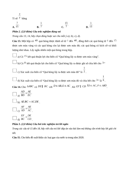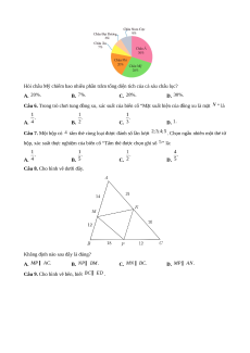d) Xác suất của biến cố “Quả bóng lấy ra được sơn màu đỏ và chia hết cho ” là . Câu 14. Cho có với . Kẻ . a) b) . c) . d) .