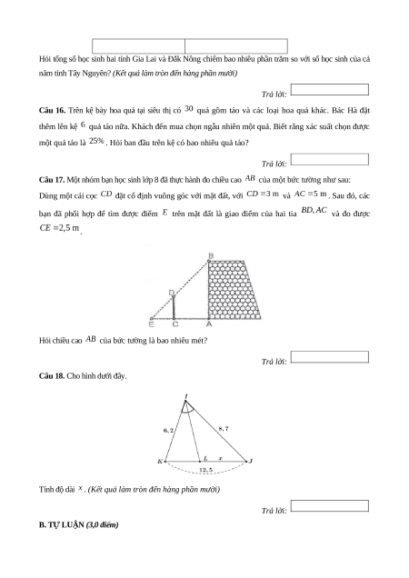 Câu 17. Một nhóm bạn học sinh lớp 8 đã thực hành đo chiều cao
