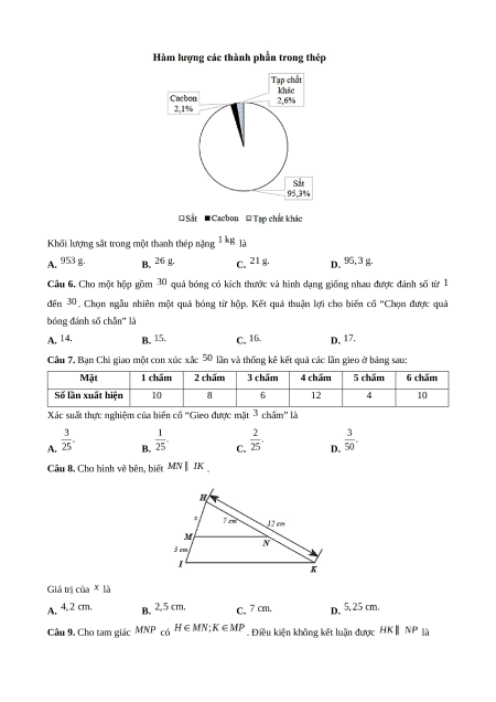 Câu 8. Cho hình vẽ bên, biết . Giá trị của là A. B. C. D. Câu 9. Cho tam giác có