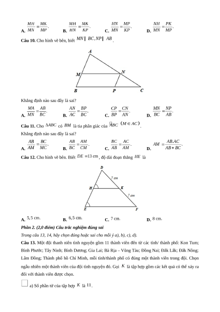 Câu 13. Một đội thanh niên tình nguyện gồm 11 thành viên đến từ các tỉnh/ thành phố: Kon Tum;