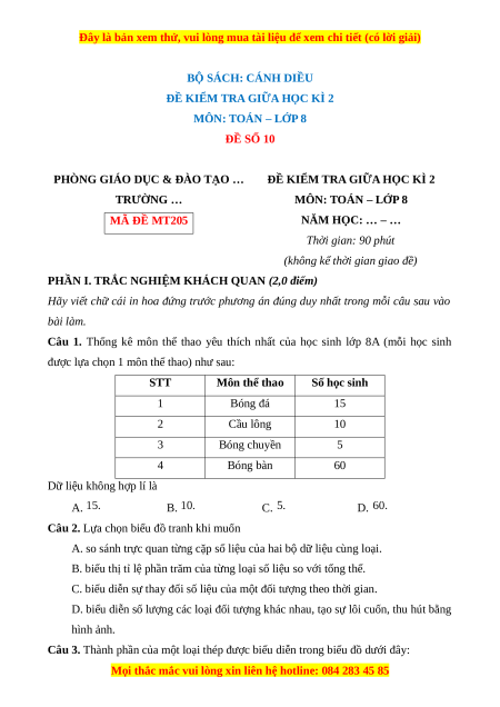 - Tailieugiaovien.com.vn giới thiệu bộ 10 đề giữa kì 2 gồm đầy đủ ma trận và lời giải chi tiết môn Toán 8 Cánh diều mới nhất năm 2024 nhằm giúp Giáo viên có thêm tài liệu tham khảo ra đề thi Toán lớp 8.