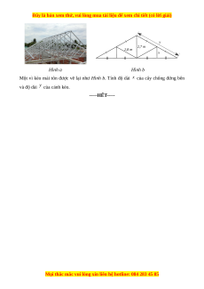 Một vì kèo mái tôn được vẽ lại như Hình b. Tính độ dài của cây chống đứng bên
