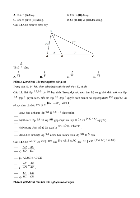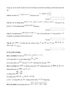 nhiều hơn số học sinh lớp là bạn. Câu 14. Cho có với . Kẻ . a) b) . c) . d) .