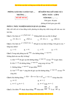 KIỂM TRA GIỮA HỌC KÌ 2 MÃ ĐỀ MT101 MÔN: TOÁN – LỚP 8 NĂM HỌC: … – …