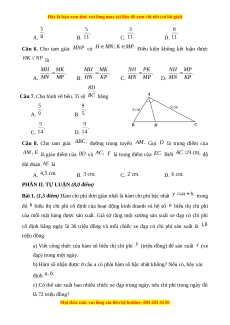 Bài 1. (1,5 điểm) Hàm chi phí đơn giản nhất là hàm chi phí bậc nhất trong