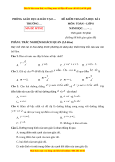 ĐỀ KIỂM TRA GIỮA HỌC KÌ 2 TRƯỜNG … MÔN: TOÁN – LỚP 8 MÃ ĐỀ MT102 NĂM HỌC: … – … Thời gian: 90 phút