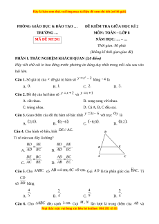 ĐỀ KIỂM TRA GIỮA HỌC KÌ 2 TRƯỜNG … MÔN: TOÁN – LỚP 8 MÃ ĐỀ MT201 NĂM HỌC: … – … Thời gian: 90 phút