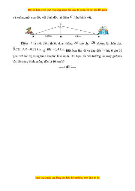 tốc độ trung bình xuống dốc là 10 km/h? -----HẾT-----