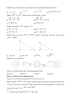 đồng dạng theo trường hợp góc - góc khi A. . B. và . C. . D. . Câu 10. Cho tam giác vuông tại thì A. . B. . C. . D. .