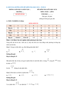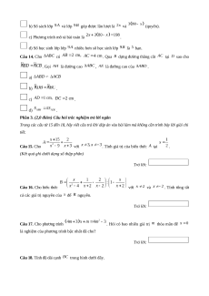 Trong các câu từ 15 đến 18, hãy viết câu trả lời/ đáp án vào bài làm mà không cần trình bày lời giải chi tiết. Câu 15. Cho với