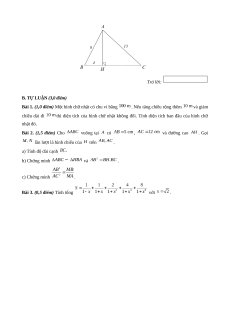 Bài 2. (1,5 điểm) Cho vuông tại có , và đường cao . Gọi