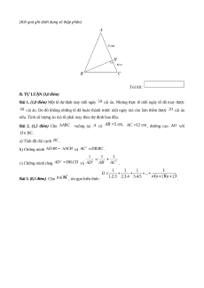 d) Vậy sau giờ thì xe con đuổi kịp xe khách. Câu 14. Cho tam giác