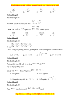 A. B. C. D. Câu 6. Với thì phương trình A. Vô nghiệm. B. Vô số nghiệm.