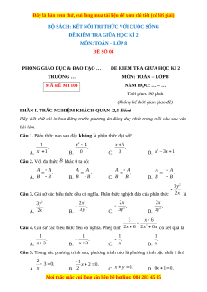 ĐỀ KIỂM TRA GIỮA HỌC KÌ 2 MÔN: TOÁN – LỚP 8 ĐỀ SỐ 04